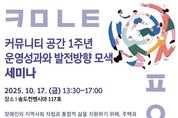 (포탈뉴스통신) 인천시사회서비스원 소속 인천시장애인주거전환지원센터는 오는 17일 인천시 연수구 송도컨벤시아 117호에서 ‘커뮤니티 공간 1주년 운영 성과와 발전 방향 모색 세미나’를 연다고 13일 밝혔다. 인천시장애인주거전환지원센터는 장애인 지원 주택이 위치한 중구 신흥동 오피스텔 1층 주민 공용 공간을 ‘공감터 수다’로 꾸미고 장애인-비장애인 소통 공간으로 활용하고 있다. LH인천본부 지원으로 지난해 10월 문 열었다. 공간은 40㎡ 규모로, 오전 8시~오후 8시 주민 누구나 이용할 수 있다. 휴식공간으로 활용할 뿐만 아니라 주민 참여 프로그램도 열린다. 센터는 수다 개소 1년을 맞아 열리는 이번 세미나에서 커뮤니티 공간 운영 성과와 장애인 자립 지원 활성화와 커뮤니티 공간의 필요성을 들여다본다. 또 타 지역에서 운영하는 주민 커뮤니티 공간 사례를 공유한다. 김정화 공터 사회적협동조합 이사장과 이용선 성남시 발달장애인주거전환센터 팀장, 박시현 월평빌라 소장, 고은주 마포돌봄사회적협동조합 이사장이 사례 발표자로 나선다. 이어 박숙경 경희대 후마니타스칼리지 객원교