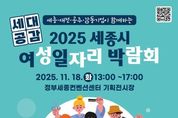 (포탈뉴스통신) 세종특별자치시가 오는 18일 정부세종컨벤션센터 기획전시장에서 ‘세종시 여성일자리 박람회’를 개최한다. 시가 주최하고 세종여성새로일하기센터가 주관하는 이번 박람회는 여성의 취·창업 동기를 부여하고, 능력있는 여성 인재를 기업과 연계시키기 위해 마련됐다. 박람회에는 세종과 대전, 충남 공주 소재 25곳 기업의 현장채용관을 운영하고, 창업상담관과 구직상담관, 유관기관 홍보관, 창업자 프리마켓을 운영한다. 특히 관내 일자리 유관기관 외에도 대전광역새일센터와 대전배재대ICT새일센터, 공주새일센터가 함께 다채로운 채용 연계 사업을 안내할 예정이다. 이와 함께 3차원식품기술 전문가와 조향사, 색채심리상담사 직업체험관과 이력서·자기소개서 자문, 인공지능(AI) 면접, 증명사진 촬영 등 다양한 부대행사도 이어진다. 박람회는 시민 누구나 무료로 참여할 수 있으며, 자녀 동반 여성을 위한 자녀돌봄구역도 함께 운영한다. [뉴스출처 : 세종시]