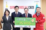 (포탈뉴스통신) 대전원예농협은 5일 대전시를 방문하고 어려운 이웃을 위해 5,000만 원 상당 백미 10㎏ 1,500포대를 기탁했다. 기탁된 백미는 대전사회복지공동모금회를 통해 대전시 사회복지시설, 무료 급식소 등 주변의 어려운 이웃에게 전달될 예정이다. 이날 기탁식에는 이장우 대전시장, 이윤천 대전원예농협 조합장, 황진선 농협은행 대전본부장, 박용일 대전원예농협 노은농산물공판장장, 유재욱 대전사회복지공동모금회장이 함께했다. 이윤천 대전원예농협 조합장은 “추운 겨울 어려운 이웃에게 따뜻한 마음과 희망이 전달되길 바란다”라며 “앞으로도 지역사회를 위한 환원에 앞장서겠다”라고 말했다. 이에 이장우 시장은 “온정을 담은 백미는 도움이 필요한 곳에 잘 전달될 수 있도록 하겠다”라고 말했다. 한편, 대전원예농협은 사랑의 김장 나누기, 농산물 기부 등을 통해 지역사회 환원에 앞장 서고 있으며 대전원예농협 노은농산물공판장은 전국 농산물도매시장 도매법인 평가에서 '24년 전국 1위(최우수), '25년 전국 2위(우수)에 선정된 바 있다. [뉴스출처 : 대전시]