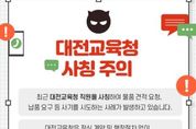 (포탈뉴스통신) 대전시교육청은 최근 직원을 사칭해 물품 납품 요청과 선입금 등을 시도하는 사기 사례가 발생함에 따라 각별한 주의를 요청했다. 사칭 사례는 공무원 명함을 도용해 전화와 문자로 특정 업체의 물품(소방물품, 공사자재 등)을 대리 구매하도록 유도하고 대리 구매한 물품의 대금을 교육청에 청구하기 전에 먼저 개인 계좌 등으로 선입금할 것을 요구하는 방식으로 이뤄졌다. 교육청은 즉시 경찰서에 수사를 의뢰하고, 공사·물품 계약 관련 업체에 주의 안내 문자를 발송했으며 교육청 누리집에도 사칭 주의 안내문을 게시하는 등 피해 예방 조치를 취했다. 아울러 정식 계약 절차 없이 물품 납품이나 금전거래를 요구하는 일은 없다며 경각심을 가지고 주의해 달라고 강조했다. 대전시교육청 윤석오 재정과장은 “의심스러운 연락을 받은 경우 반드시 해당 기관 또는 부서를 통해 사실 여부를 확인하고, 사기로 확인될 시 경찰서와 관계 기관에 즉각 신고하시길 바란다”고 당부했다. [뉴스출처 : 대전시교육청]