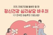 (포탈뉴스통신) 대전 동구는 구민의 마음 건강 회복을 지원하는 ‘2026년 정신건강 심리상담 바우처 사업’을 본격 시행한다고 23일 밝혔다. ‘정신건강 심리상담 바우처 사업’은 기존 ‘전 국민 마음투자 지원사업’을 새롭게 개편해, 심리상담이 필요하다고 인정되는 대상자에게 전문 심리상담 서비스를 바우처 형태로 지원하는 사업이다. 지원 대상은 ▲정신건강복지센터·대학교상담센터·청소년상담복지센터·Wee센터 등에서 상담이 필요하다고 인정돼 의뢰서를 발급받은 사람 ▲정신의료기관 등에서 상담 필요 소견서를 발급받은 사람 ▲국가건강검진 정신건강검사에서 중간 정도 이상의 우울이 확인된 사람 ▲자립준비청년 및 보호연장아동 ▲재난피해자(본인·유가족) ▲정신건강복지센터·자살예방센터 등록 회원 등이다. 지원 대상자로 선정되면 120일 동안 총 8회의 전문 심리상담 서비스를 이용할 수 있는 바우처가 제공되며, 거주지와 관계없이 본인이 원하는 서비스 제공기관을 선택해 소득 수준에 따른 본인부담금을 납부하고 이용할 수 있다. 신청은 주민등록상 주소지 또는 실거주지 동 행정복지센터 방문이나 복지로 누리집을 통한 온라인으로 가능하