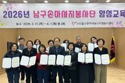 (포탈뉴스통신) 울산 남구자원봉사센터는 7일 센터 대강당에서 교육생 13명이 참석한 가운데 ‘2026년 남구손마사지봉사단 양성교육 수료식’을 개최했다. 이번 교육은 총 3회의 이론 및 실기 과정을 통해 전문 역량을 갖추는 데 중점을 두고 진행됐다. 이날 수료한 교육생들은 향후 ‘남구손마사지봉사단’으로서 관내 경로당 자원봉사활동과 지역 행사 지원 등 다양한 현장에서 나눔 활동을 펼칠 예정이다. ‘남구 손마사지봉사단’은 지난 2024년부터 양성교육을 통해 활동을 시작했으며, 매년 15회 이상 정기적으로 활동 중이다. 최근 활동 인원이 5명 정도로 줄어 경로당 자원봉사 수요를 충족하기 어려워 이번에 새로이 손마사지봉사단 양성교육을 실시하게 됐다. 최영수 남구자원봉사센터 이사장은 “바쁜 일정 속에서도 열정적으로 모든 교육 과정을 마치고 수료하는 봉사자분들께 진심으로 감사의 인사를 전한다”며 “전문 기술을 갖춘 봉사단의 손길을 통해 지역사회 곳곳에 따뜻한 나눔 문화가 더욱 견고하게 뿌리내릴 수 있도록 앞장서 주길 기대한다”고 당부했다. [뉴스출처 : 울산시 남구]