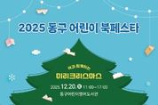 (포탈뉴스통신) 부산 동구는 동구어린이영어도서관의 새단장을 기념해 오는 12월 20일 '2025 동구 어린이 북페스타'를 개최한다. 이번 행사는 어린이와 학부모가 함께 즐길 수 있는 공연, 특강, 체험 등 다양한 독서문화 프로그램으로 구성됐으며, 연말 분위기를 담은 ‘미리 크리스마스’를 주제로 진행된다. 먼저 공연 프로그램으로 △Magic&Story ‘어린왕자’와 Big Book&Music ‘크리스마스를 기다리며’가 마련되어 어린이들의 흥미를 한껏 끌어올릴 예정이다. 이어지는 특강에서는 크리스마스 팝업북 만들기, 크리스마스 오너먼트 만들기 등 아이들의 창의력을 키울 수 있는 체험형 활동이 운영되며, 공연 및 특강은 사전신청을 통해 참여할 수 있다. 또한 행사장에서는 ▲영어 필사 책갈피 만들기 ▲샌드아트 체험 ▲소망트리 꾸미기 ▲스탬프 투어 등 당일 현장에서 자유롭게 참여할 수 있는 다양한 체험 프로그램도 함께 마련되어 가족 단위 방문객들에게 풍성한 즐길거리를 제공할 예정이다. 도서관 관계자는 “지역주민들이 이번 행사를 통해 책과 문화 속에서 따뜻한 연말 감성을 느끼길 바란다”며 “많은