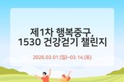 (포탈뉴스통신) 부산 중구는 관내 중구민과 직장인을 대상으로 3월 1일부터 3월 14일까지 걷기 앱 워크온을 활용한‘제1차 행복 중구, 1530 건강걷기 챌린지’를 운영한다 참여자들의 걷기 실천을 위한 본 챌린지는 시간과 장소 제약 없이 워크온 앱이 설치된 휴대폰을 지참한 후 기간 내 70,000보 걷기를 목표로 하고 있으며, 목표 달성 시 추첨을 통해 소정의 상품을 제공할 예정이다. ‘제1차 행복중구, 1530 건강걷기 챌린지’는 2월 23일부터 사전 예약을 시작하며 참여를 희망하는 주민은 스마트폰에서 워크온 앱을 설치하고 부산 중구보건소 커뮤니티 가입, 챌린지 메뉴 ‘예약하기’또는‘참여하기’버튼을 누르면 참여가 가능하다. 자세한 사항은 워크온 챌린지 게시판을 참고하거나 중구 보건소로 문의하면 된다. [뉴스출처 : 부산시중구]