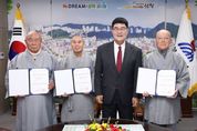 (포탈뉴스통신) 삼척시는 11월 28일 시장 집무실에서 신규 지정된 도지정 문화유산의 지정서 전달식을 진행했다. 지난 11월 21일 ‘삼척 영은사 석조비로자나삼불좌상’, ‘삼척 신흥사 석조석가여래삼존좌상’이 유형문화유산으로, ‘삼척 감로사 원당도’가 문화유산자료로 각각 지정됐다. [뉴스출처 : 강원도 삼척시]