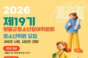 (포탈뉴스통신) 영월군청소년수련관은 관내 중~고등학교 청소년을 대상으로 오는 21일(토)까지 영월군청소년참여기구 신규, 연임 위원을 추가 모집한다. 모집 분야는 제19기 영월군청소년참여위원회와 제15기 청소년운영위원회 2개의 청소년참여기구다. 청소년참여위원회는 영월 지역 청소년을 대표해 청소년 정책과 사업 전반에 대한 의견을 제안하는 기구이며 교류활동, 워크샵, 정책제언대회, 정책전달식 등을 진행한다. 청소년운영위원회는 영월군청소년수련관의 프로그램과 운영 전반을 청소년이 직접 자문하고 평가하는 역할을 수행하며 타 기관 교류활동, 청소년축제 부스 운영, 워크숍, 모니터링 등의 활동을 진행한다. 모집대상은 영월군 관내 중학교 1학년~고등학교 2학년 청소년이면 누구나 지원할 수 있고 네이버 폼 신청서를 통해 신청받고 있다. 모집에 대한 보다 자세한 내용은 홈페이지 내 공지사항 혹은 영월군청소년수련관 청소년활동팀으로 문의하면 된다. [뉴스출처 : 강원도 영월군]