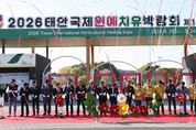 (포탈뉴스통신) 17년 만에 다시 태안에서 열리는 세계 최초 국제승인 원예치유박람회 '2026 태안국제원예치유박람회'가 25일 개장식과 개막식을 잇따라 열고 본격적인 운영에 들어갔다. ‘2026 태안국제원예치유박람회’는 2009년 이후 17년 만에 열리는 박람회로, '자연에서 찾는 건강한 미래, 원예·치유'를 주제로 40개국 120개 기업이 참여하며 예상 방문객은 182만 명에 달한다. 박람회는 4월 25일부터 5월 24일까지 30일간 충남 태안군 안면도 꽃지해안공원에서 열리며, 실내에는 특별관·치유농업관·국제교류관·산업관·충남 스마트농업관·원예치유체험관, 야외에는 치유정원·세계 작가정원·감성 테마정원 등으로 꾸며졌다. 이날 오전에는 8시 30분부터 가세로 군수를 비롯한 전형식 충청남도 정무부지사, 정광섭 충남도의회 제1부의장, 전재옥 태안군의회 의장 등 50여 명의 주요 인사가 참석한 가운데 개장식이 열려 테이프 커팅식과 기념촬영, 박람회장 라운딩이 진행됐다. 이어서, 오후 아일랜드 리솜에서는 가세로 군수와 김태흠 충남도지사, 김선규 호반건설 회장 등 120여 명이 참석한 환영 리셉션이 열렸으며,