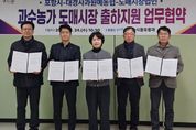(포탈뉴스통신) 포항시는 24일 포항시 농산물 도매시장에서 2026년 신규사업인 ‘과수농가 도매시장 출하지원사업’의 원활한 추진을 위한 업무협약(MOU)을 체결했다. 이날 협약식에는 이현주 포항시 농업기술센터소장을 비롯해 대경사과원예농협 기계경제사업장장, 도매시장 운영법인 등 관계자들이 참석해 사업 성공을 위한 각 기관의 역할과 책임을 명시했다. 이 사업은 ‘대구경북사과원예농협 기계경제사업장’ APC(농산물산지유통센터)를 활용해, 원물 출하를 희망하는 과수농가의 물량을 공동 선별하고 도매시장까지 공동 운송하는 체계로 인건비, 물류비, 운송비를 절감할수 있는 시스템이다. 경매 대금은 도매시장 법인이 대경사과원예농협으로 공동 정산한 후, 각 농가에 최종 지급된다. 그동안 포항시 도매시장은 별도의 원물 출하 시스템 없이 포장박스 형태로만 경매가 진행돼 왔으며, 원물 출하를 원하는 지역 농가들은 인근 청송이나 안동 공판장 등 관외 지역까지 먼 거리를 이동해야 하는 불편을 겪어왔다. 포항시는 이러한 문제점을 해결하고 농가 부담을 최소화해 우리 농산물의 가격 경쟁력을 확보하고자 이번 원물 출하 시스템 도입과