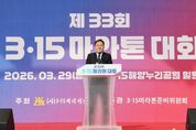 (포탈뉴스통신) 경상남도는 29일 창원 3·15해양누리공원에서 ‘제33회 3·15마라톤대회’를 개최하고, 대한민국 민주주의의 초석인 3·15 의거의 숭고한 정신을 계승하는 화합의 장을 마련했다. 이날 행사에는 박완수 도지사를 비롯해 박홍기 3·15의거기념사업회 회장, 최재호 3·15마라톤준비위원회 대회장 등 주요 인사가 참석했다. 박 지사는 대회 준비에 힘쓴 관계자들을 격려하며 감사의 뜻을 전했다. 박 지사는 축사를 통해 “어김없이 마산에도 완연한 봄이 찾아왔다”며 “마산만을 달리면서 봄을 만끽하고, 3·15 정신을 되새기는 뜻깊은 시간이 되길 바란다”고 대회의 의미를 강조했다. 박 지사는 축사 이후 주요 내빈들과 함께 출발 버튼을 누르며 대회의 시작을 알렸고, 대회 참가자들을 응원했다. 이번 대회는 3·15의거기념사업회가 주최하고 3·15마라톤준비위원회가 주관했으며, 박완수 경남도지사, 장금용 창원시장 권한대행을 비롯해 약 10,000여 명의 전국 각지의 마라톤 동호인과 시민들이 참여해 성황을 이뤘다. 올해로 33회째를 맞이한 이번 대회는 10km와 5km 두 종목으로 진행됐다. 3·