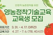 (포탈뉴스통신) 진안군은 신규농업인 및 예비 귀농‧귀촌인을 대상으로 하는 ‘2026 영농정착기술교육’ 교육생을 모집한다. 이 교육은 귀농‧귀촌에 필요한 체계적인 기초 영농기술교육과 선도 농가의 농업정보를 공유함으로써 안정적인 농업‧농촌 정착을 돕기 위해 추진된다. 모집대상은 진안군으로 귀농‧귀촌을 희망하는 신규농업인이거나, 청년농을 비롯한 교육에 관심있는 모든 진안군민이며, 4월 17일까지 온라인 접수 및 방문 접수로 신청하면 된다. 교육 기간은 4월 27일부터 7월 6일까지 기간 중 7회(총 40시간)에 걸쳐 농업 법률상식, 세무회계 실무, 작목별 선도농장 견학, 농기계 실습, 농업 경영계획 수립 등 이론 교육과 현장 교육을 병행하여 운영된다. 농업기술센터 노금선 소장은 "이번 교육이 신규 농업인과 예비 귀농‧귀촌인들이 안정적으로 정착할 수 있도록 현실성 있는 교육 프로그램을 제공하여 다양한 영농 기술 습득과 정보를 공유함으로써, 성공적인 영농정착계획을 수립할 수 있도록 적극 지원하겠다”라고 밝혔다. 교육에 대한 자세한 사항은 진안군농업기술센터 홈페이지에서 확인할 수 있으며 농촌지원