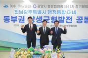 (포탈뉴스통신) 오는 7월 전남광주특별시 출범이 예고된 가운데, 여수‧순천‧광양시 행정협의회(이하 협의회)가 이를 전남 동부권 재도약의 기회로 만들기 위한 협력에 나섰다. 13일 여수시에 따르면, 협의회는 이날 국립순천대학교 우석홀에서 제41차 정기회의를 개최하고 행정통합이라는 거대한 변화의 흐름에서 전남 동부권의 밝은 미래를 담보하기 위한 공동건의 3건(여수시 발의 2건)을 공식 의결했다. 이번 건의는 국가 기간산업의 심장부인 여수‧순천‧광양 지역이 전남광주특별시의 핵심 축으로 기능하기 위한 법적‧제도적 장치를 특별법에 마련해야 한다는 공감대에 따른 것이다. 여수‧순천‧광양시장은 이날 ‘전남 동부권 상생균형발전과 산업대전환’을 위한 행‧재정 지원 근거와 전남광주특별시 3개 청사의 기능별 본부제 운영의 특별법 반영, ‘KTX-SRT 통합에 따른 전라선 좌석 확대 공급’을 정부 부처 등에 건의했다. 협의회 관계자는 “이번 공동건의는 전남광주 행정통합을 전남 동부권 산업 경쟁력 극대화와 지역 소멸 위기 극복의 전환점으로 삼기 위함”이라며 “특별법 및 하위법령 제정과 정책 수립 과정에 반영될 수 있도록