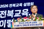 (포탈뉴스통신) 전북특별자치도교육청은 9일 전주학생교육문화관에서 ‘2026년 전북교육 설명회’를 개최했다. 도내 유·초·중·고등학교 교(원)장과 교직원 등 1,000여 명이 참여한 설명회는 ‘2026. 전북교육, 이렇게 달라집니다!’를 주제로 2026년 핵심과제와 주요 정책 방향을 안내하는 자리로 마련됐다. 먼저 유정기 교육감 권한대행이 지난해 전북교육 성과와 정책 방향을 직접 설명했다. 전북교육청은 올해 10대 핵심과제로 학력신장 분야는 △독서·인문교육 △수업혁신 △교과학습 강화 △AI 교육 △특성화고 취업 △교육활동 보호를, 책임교육 분야는 △민주·생태·역사교육 △학생 마음건강 지원 △다문화교육 △유아 발달·방과후 지원을 추진한다. 이날 유 권한대행은 10대 핵심과제 가운데 △AI 교육 △민주·생태·역사교육 △학생 마음건강 지원 등 3가지를 올해 전북교육이 반드시 책임져야 할 새로운 핵심과제로 제시했다. 유 권한대행은 “3년 연속 전국 최우수교육청 선정과 7년 만의 종합청렴도 2등급 회복은 학교 현장의 교장·원장 선생님을 비롯한 구성원 한 사람 한 사람의 헌신과 책임감이 있어 가능한