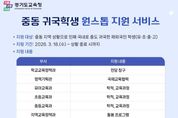 (포탈뉴스통신) 경기도교육청이 18일 ‘중동 귀국 학생 원스톱 지원 서비스’를 운영하며 재외국민 학생의 학습권 보호와 안정적인 국내 학교 적응을 적극 돕는다. 이번 서비스는 지난 12일 열린 교육부 신학기 점검 회의에 따라 중동 지역 분쟁 및 정세 악화로 긴급 귀국하는 학생의 학습 지원을 위해 마련했다. 지원 대상은 중동 지역 정세 악화로 국내에 중도 귀국한 재외국민 학생 중 신청자다. 운영 기간은 3월 18일부터 상황 종료 시까지로, 경기도교육청 알림창(팝업)에서 신청할 수 있다. 도교육청 학교교육정책과에서 전담 창구를 맡고, 관련 부서 및 교육지원청과 긴밀히 협력하며 국제교류, 학적, 유·초·중·고 교육과정, 심리 및 정서, 한국어 교육 등에 통합 지원 시스템을 가동한다. 우선 이들을 위한 입학 및 취학 절차를 획기적으로 간소화한다. 유치원은 유보통합포털에서 입학 가능 인원을 실시간 현행화하고, 초·중등 학생은 필수 서류 이외에 기타 서류가 미비하더라도 우선 취학·편입학 처리를 진행한 후 사후에 보완할 수 있도록 지침을 마련했다. 또한 학교생활 적응을 위한 심리 및 교육 서비스 강화