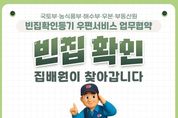 (포탈뉴스통신) ■ 증가하는 빈집! 현장 조사 한계 발생 저출산, 고령화, 인구 유출로 농어촌·중소도시 중심으로 → 인구 소멸, 빈집 빠르게 증가 5년마다 한국부동산원 대행으로 빈집실태조사 실시 → 조사원이 현장 방문하여 확인 ■ 빈집을 위해 모이자 기존 현장 조사의 한계를 극복! 정확도·효율성을 높이기 위해 '빈집확인등기 우편서비스 업무협약' 등 새로운 방식 도입 (해양수산부, 국토교통부, 농림축산식품부, 우정사업본부, 한국부동산원) ■ 빈집을 위해 고쳐보자 (한국부동산원) 빈집확인등기 우편 발송 → (우체국·집배원) 빈집확인등기 우편 배달, 체크리스트 작성·회신 → (한국부동산원) 실제 빈집 현장조사(빈집 확정 및 등급 산정) 정보수령▶배달 구역 내 직접 방문▶주택 외관상태·거주자 유무 확인▶확인 정보 수집 기록 · 25년 빈집조사: 경기 광주·경북 김천(579호) 대상 우편 서비스 시범사업 실시 → 26년 빈집조사: 지자체 4~5곳 추가 선정 후 시범사업 확대 실시 → 최종검토: 시범사업 결과(판정률 상승 등) 토대로 우편서비스 전국 도입 여부 검토 예정 전국 3,