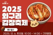 (포탈뉴스통신) 구리시상권활성화재단은 오는 12월 6일 구리광장에서 ‘2025 와구리 김장축제’를 개최한다고 밝혔다. 이번 축제는 ‘경기도 상권 친화형 도시 조성 공모사업’ 선정으로 추진되는 ‘구리 윈터페스타’의 첫 번째 행사로, 지역 농산물 소비 촉진, 전통문화 체험, 이웃돕기 나눔 실천을 주요 가치로 삼아 시민 누구나 참여할 수 있는 겨울 축제로 마련됐다. 축제의 하이라이트인 김장 체험은 시민들이 직접 김치를 담가보는 프로그램으로 진행되며, 흑백요리사로 큰 인기를 얻고 있는 이모카세 김미령 한식 요리사의 지도로 구리시새마을회, 구리 도시공사, 무지개합창단 등 지역 자원봉사자들이 함께해 김장을 처음 접하는 시민들도 손쉽게 전통 김치를 완성할 수 있도록 도울 예정이다. 이날 담근 김치의 일부는 관내 홀로 어르신, 다문화가정 등 취약계층에 전달돼 시민이 직접 참여하는 연말 나눔 활동으로 따뜻한 의미를 더한다. 또한 축제장을 찾은 시민들을 위해 트로트 가수 태진아의 공연, 가야금 영재 조영재 & 아인스바움 윈드 챔버 연주 등 풍성한 무대 프로그램과 지역 소상공인 먹거리 부스, 다양한 체험 코너 등 볼거