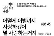 (포탈뉴스통신) 경기도와 경기문화재단이 12월을 맞아 올해를 마무리하는 문화예술교육 비평웹진 〈지지봄봄〉 45호를 발행했다. ‘어떻게 이별까지 사랑하겠어, 널 사랑하는 거지’를 제목으로 한 이번 호는 현장의 지속가능성, 행정 구조의 과제, 비평의 역할 등 문화예술교육이 직면한 주요 쟁점을 깊이 있게 다룬다. 먼저, 기획자 유모라의 글 '예술인으로 존재하고 연대하기 위하여 - 홍우주 예술학교 A.L.T.O. 탄생기'는 11년 차 홍우주사회적협동조합이 ‘홍대앞 정신’을 잇기 위해 시작한 ‘예술학교 A.L.T.O.’의 배경과 의미를 조명한다. 파일럿 프로그램을 통해 확인한 연대의 가능성과 함께, 홍우주가 그리는 지속 가능한 지역 문화예술 생태계를 탐색한다. ‘게릴라노동자들’의 대담 '문화재단 실무자 탈출기 - 『나라를 위해서 일한다는 거짓말』 함께 읽기'에서는 전 문화재단 실무자들이 공직사회의 조직 문화와 업무 환경을 돌아본다. 노한동의 책을 매개로 공공 조직의 현실을 비판적으로 되짚고, 여전히 현장에서 고군분투하는 실무자들에게 연대와 응원의 메시지를 전한다. 광주광역시 청소년삶디자인센터 김소연 기획실장 인터뷰 '이