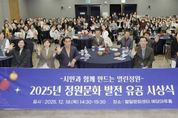 (포탈뉴스통신) 수원특례시는 18일 팔달문화센터 예당마루홀에서 ‘2025년 정원문화 발전 유공 시상식’을 열었다. 정원문화 발전에 기여한 시민과 단체 등에 수원시장상(47개)과 수원시의회 의장상(7개)을 수여했다. 시상은 표창장·감사패 수여, 시민정원 경연대회, 베스트 관리상, 올해의 정원인상 등 분야별로 진행됐다. 지난 10월 효원공원에서 열렸던 ‘2025년 수원시 시민정원 경연대회’ 수상팀들을 시상했다. 하나의 물방울이 만들어내는 무한한 생명의 파장을 표현한 ‘완뚝원정대’의 ‘리플(ripple) 가든’이 대상을 받았다. 어린 꽃이 꿈꾸는 산의 이미지를 담은 ‘진달래동산 꽃뫼’ 팀의 ‘어린 꽃이 꿈꾸는 뫼(산)’이 최우수상, 빛과 생명의 흐름을 표현한 ‘빛나게’ 팀의 ‘Flowing Light, Flowering Life(플로잉 라이트, 플라워링 라이프’가 우수상을 받았다. 이재준 수원시장은 “도심 속 열린 정원은 시민에게 휴식처가 되고, 기후 위기 대응에는 힘이 된다”며 “정원을 가꾼 수상자 노력에 감사하며 시민 일상에 초록이 늘도록 지원을 이어가겠다”고 말했다. [뉴스출처 : 경기도 수원시