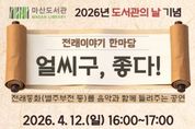 (포탈뉴스통신) 김포시 마산도서관은 제4회 도서관의 날을 맞아 오는 4월 12일 오후 4시부터 5시까지 마산도서관 3층 다목적실에서 전래이야기 한마당 '얼씨구, 좋다!'를 운영한다. 4월 12일은 '도서관법'에 따라 도서관에 대한 국민의 이해와 관심을 높이고 이용을 촉진하기 위해 지정된 ‘도서관의 날’이다. 시는 이를 기념해 가족 단위의 관람객이 즐길 수 있는 공연을 마련했다. 공연은 밴드 ‘판’이 진행하며, 건반과 베이스, 기타, 장구 등 다양한 악기를 활용해 전래동화를 음악으로 재구성한 무대다. 혹부리 영감, 별주부전 등 친숙한 이야기를 노래와 연주로 풀어내며, 옛 동요와 국악 장단을 활용한 창작곡도 함께 선보일 예정이다. 이번 공연은 김포시민 100명을 대상으로 하며, 3월 24일 오전 10시부터 김포시 통합예약 홈페이지를 통해 신청할 수 있다. [뉴스출처 : 경기도 김포시]