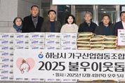 (포탈뉴스통신) 지난 4일, 하남시 가구산업협동조합(이사장 양귀술)이 연말을 맞아 지역 내 취약계층을 돕기 위해‘하남 사랑愛나눔’성품으로 라면 20개입 100박스, 백미 10㎏ 100포(총 485만원 상당)를 하남시에 기탁했다. 이날 기탁식에는 이현재 하남시장을 비롯하여 양귀술 이사장, 임철순 사무총장 등 회원 12명이 함께 참석했다. 하남시 가구산업협동조합은 70명의 조합원으로 구성된 하남시 유일의 가구조합으로서, 최근 진행한 사업의 수익금 중 일부를 지역사회에 환원하고자 성품을 마련했다고 전했다. 양귀술 이사장은 “우리 조합이 지역사회의 한 구성원으로 책임을 다하고자 이번 나눔을 준비했다”며, “앞으로도 지역과 함께 성장하는 나눔을 지속적으로 실천할 수 있도록 노력하겠다”라고 기탁 소감을 밝혔다. 하남시 관계자는 “지역사회를 위해 뜻깊은 나눔을 실천해준 하남시 가구산업협동조합에 감사드리며, 소중한 성품이 취약계층의 식생활 지원에 큰 힘이 될 것이다”라고 감사 인사를 전했다. 한편, 이번에 기탁된 성품은 하남시푸드뱅크를 통해 경제적 어려움을 겪는 어르신 등 취약계층에 전달되어, 생