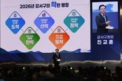 (포탈뉴스통신) 진교훈 서울 강서구청장이 14일 “지역의 수많은 현안들을 하나하나 해결하면서 구민의 삶에 착! 다가가는 구정을 펼치겠다”고 강조했다. 진 구청장은 이날 오후 코엑스 마곡에서 열린 ‘2026년 신년인사회’에서 올해는 도전과 혁신으로 구민과 함께 성장하는 도약의 해가 될 것”이라며 이같이 말했다. 진 구청장은 ▲균형발전 도시에 도착 ▲안전‧안심 생활에 안착 ▲미래경제 도시에 선착 ▲복지‧건강 구민 곁에 밀착 ▲교육‧문화 일상에 정착 등 5가지 핵심전략을 제시하며 “구민이 일상에서 체감할 수 있는 착한 행정을 펼쳐나가겠다”고 재차 강조했다. 가장 먼저 제시한 과제는 고도제한 완화 신속 이행과 주거 환경 개선이다. 그는 ”고도제한 완화를 위한 밑그림은 그려졌지만 조기 시행과 강서구에 최적의 방안이 적용될 수 있도록 끊임없이 노력하겠다“며 ”지역 곳곳에서 추진 중인 재개발·재건축 등 정비사업들도 차질 없이 추진해 나가겠다“고 말했다. 또한, 대장홍대선 31년 개통, 강북횡단선 재추진 등을 통해 교통 인프라를 확충하겠다는 구상도 밝혔다. 이어 폭우, 폭설 등 자연재난