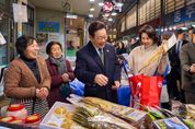 (포탈뉴스통신) 이재명 대통령과 김혜경 여사는 오늘 낮, 설 명절을 앞두고 충북 충주시에 위치한 무학시장을 찾아 지역 세밑 물가를 점검하고 상인들을 만나 현장 의견을 청취했다. 무학시장은 지난 1978년 노점상들의 정착을 위해 개설된 전통시장이며, 이번 방문은 설 민심을 청취하기 위한 민생 행보의 일환이다. 이 대통령과 김 여사는 시장 내 여러 상점을 들러 “새해 복 많이 받으세요”라며 인사를 했고, 상인과 시민들은 환호와 박수로 이 대통령 부부를 맞았다. 이 대통령 부부에게 더덕을 판매한 상인은 “덕분에 마수걸이를 한다”며 “오늘 장사가 잘될 것 같다”고 말해 웃음을 자아냈다. 다른 상인들도 “힘나게 해주셔서 감사하다”, “너무 고생 많으시다”며 인사를 전했다. 이 대통령 부부는 황태포, 시금치, 곶감과 깐밤 등 제수용품과 먹거리를 구입했고 백도라지, 마른 멸치, 배추전 등을 즉석에서 맛보기도 했다. 이 대통령 부부는 온누리상품권과 현금으로 결제했다. 김 여사가 물건을 고르는 사이 이 대통령은 상인들에게 “장사는 잘 되느냐”, “곧 설인데 어떠시냐”고 물었다. 정육점 사장은 “대목 때