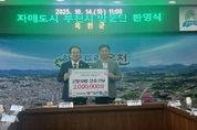 (포탈뉴스통신) 14일, 조용익 부천시장을 비롯한 부천시 충청권 정책현장 벤치마킹 방문단 24명이 ‘향수의 고장’ 옥천군을 방문했다. 이번 만남은 2002년 자매결연을 체결한 두 지역 간의 우호 증진과 교류 확대를 위한 자리로 마련됐다. 이날 옥천군과 부천시는 각 200만 원의 고향사랑기부금을 상호 기탁하며 두 지역의 발전을 함께 응원했다. 황규철 옥천군수는 옥천군청에 마련된 기탁식에서 “공직자들의 고향사랑 상호 기부가 지역 간 상생 협력의 통로가 되고 있다”며 “부천시와 따뜻한 연대를 이어가게 되어 기쁘다”고 말했다. 조용익 시장 역시 “기부를 통해 두 지역이 더욱 돈독해지고, 함께 성장할 수 있기를 기대한다”고 전했다. 특히, 얼마 전 모금을 시작한 ▲옥천군 첫 지정기부사업 '예체능 꿈나무 지원(양궁·관악부)'과 ▲부천시 지정기부사업 '소외계층 스케이트 무료교실 운영'을 각각 홍보하여 두 자매도시의 협력 관계를 바탕으로 기부제 확산에 긍정적 영향을 미칠 것으로 기대된다. 옥천군에 따르면, 두 도시의 인연은 1940년대 부천시에 거주하며 소사성당 건립에 기여한 정지용 시인의 공덕을 기리며 시작됐고 2020년에