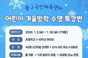 (포탈뉴스통신) 인천중구시설관리공단은 겨울방학 기간 초등학생을 대상으로 기초 수영 능력 향상과 건전한 여가선용 기회를 제공하기 위해 ‘겨울방학 어린이 수영 특강반’을 운영하고, 회원 모집을 추진한다고 18일 밝혔다. 이번 특강반은 2026년 1월 2일부터 1월 30일까지 중구국민체육센터 수영장에서 초등학교 1~6학년 어린이를 대상으로 운영된다. 강습 내용은 물 적응을 시작으로 기초 발차기·호흡법을 거쳐 자유형 25m 완영을 목표로 구성됐다. 회원 모집은 12월 26일부터 12월 31일까지 진행된다. 중구국민체육센터 홈페이지를 통한 온라인 선착순 접수로 운영되며, 모집 인원은 총 40명(반별 20명)이다. 강습은 주 3회(월, 수, 금) 운영되며 수강료는 44,000원이다. 공단 관계자는 “겨울방학 기간 어린이들이 즐겁게 수영을 배우며 기초 수영 능력을 기를 수 있도록 특강반을 준비했다”라면서 “많은 어린이가 참여해 건강한 방학을 보낼 수 있기를 바란다”라고 말했다. 어린이 수영 특강반 신청 등 프로그램과 관련해 더 자세한 사항은 중구국민체육센터 홈페이지 또는 안