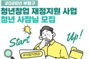 (포탈뉴스통신) 부평구가 19일부터 30일까지 지역 청년들의 창업 활성화를 위해 ‘2026년 청년창업 재정지원 사업’의 참여자를 모집한다. ‘청년창업 재정지원 사업’은 성장 가능성이 높은 청년 창업자에게 임차료, 시제품 제작비, 마케팅비에 사용할 사업화 자금을 구가 지원하는 사업이다. 모집 대상은 거주지 제한 없이 지역 내 사업장을 두고 차별화된 사업 아이템을 가진 19~39세(공고일 1월5일 기준)의 청년이다. 구는 분야별로 ▲최초지원(생애 최초 예비 창업자) 4명 ▲초기지원(3년 이하 청년 창업자) 8명 ▲성장지원(청년 1명 이상 고용 중인 7년 이하 청년 창업자) 2명 등 총 14명을 선정할 예정이다. 구는 서류심사와 면접을 통해 선정된 청년창업자에게 사업화자금(최초지원 1,000만원, 초기지원 1,200만원, 성장지원 1,500만원)을 지원하고창업 맞춤형 상담(컨설팅), 사업홍보 기회 등을 제공할 계획이다. 사업참여를 희망하는 청년은 오는 30일까지 일자리창출과로 직접방문 또는 전자우편을 통해 신청할 수 있다. 필요 서류 등 자세한 사항은 부평구 누리집 고시공고를 참