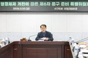 (포탈뉴스통신) 인천 서구의회 '행정체제 개편에 따른 분구 준비 특별위원회'(위원장 심우창 의원)는 20일 제6차 회의를 열어 분구추진 업무 전반에 대한 추진경과를 보고받고 현안 사항 등을 집중 점검했다. 분구특위는 주요 추진 사항으로 ▲검단구 조직구성안, ▲검단구 본예산 편성, ▲검단구 임시청사 및 인프라 구축 추진상황, ▲각 분야별 사업 추진상황 등을 집중적으로 논의했다. 한편, 검단구 임시청사는 2026년 7월 개청 예정으로, 당하동 1325 외 2필지 일원에 위치하고 연면적은 약 2만㎡ 내외로, 지상 1~3층 규모의 모듈러(Modular) 임차 방식으로 설치될 예정이다. 분구특위는 주요 추진 상황을 보고받고 질의응답을 이어가며 다각도로 분구 추진 과정을 점검했다. 심우창 분구특위 위원장은 “검단구 분구 추진이 잘 마무리될 수 있도록 최선을 다해 주시길 당부드린다”고 밝혔다. [뉴스출처 : 인천 서구의회]